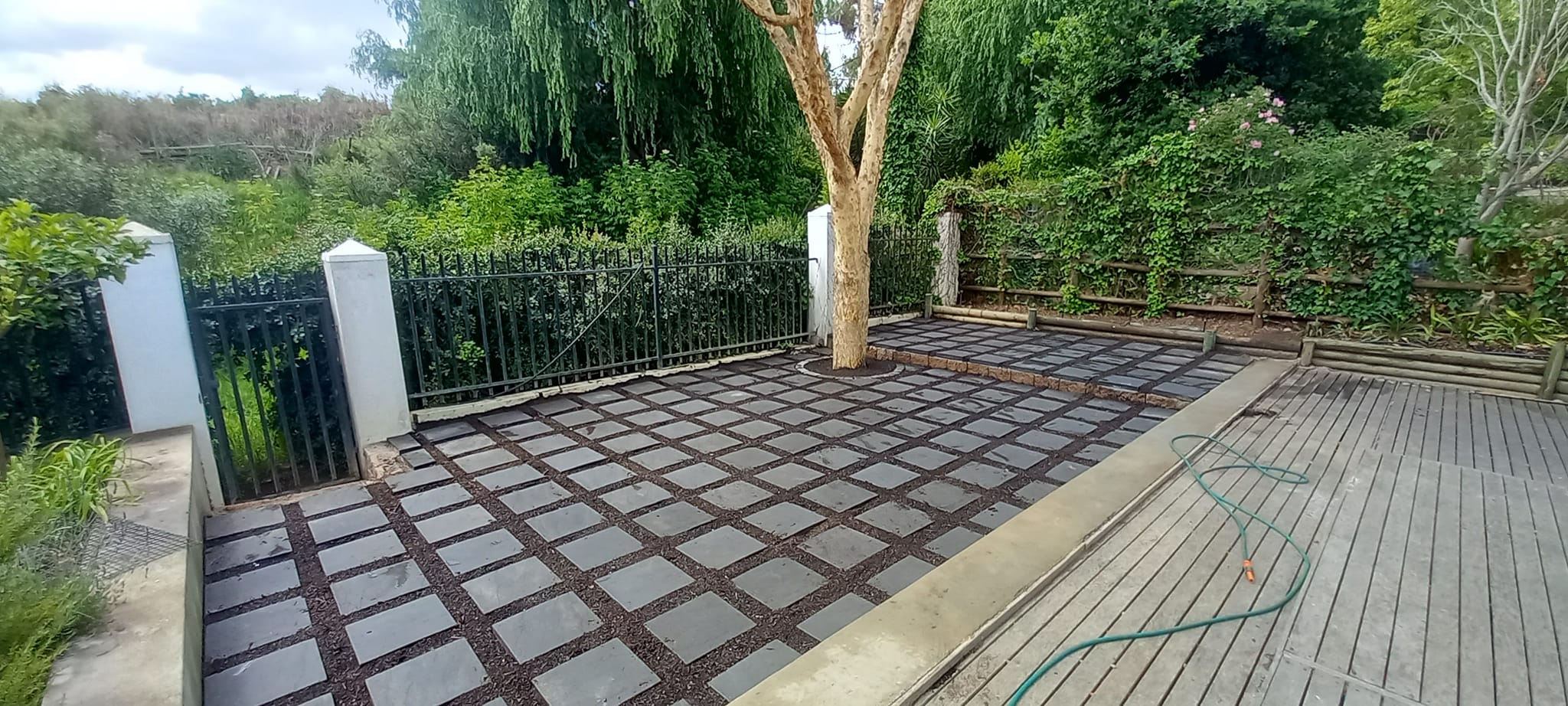 In 2022, we successfully completed a high-quality paving installation project, transforming the space with both durability and visual appeal. The process began with meticulous soil preparation and leveling to create a stable foundation. We then supplied and fitted 400x400 charcoal paver blocks, ensuring precision in alignment and spacing. To enhance the functionality of the area, we installed retainer blocks to create structured steps and integrated gum poles for raised flower beds, adding both depth and natural charm to the design. The result was a beautifully crafted outdoor space that balanced practicality with aesthetic elegance.